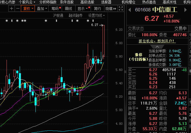 热门概念助力,中信重工股价涨停